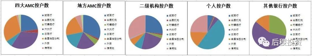 按戶數看,持牌AMC從各類型的銀行的受讓比例與受讓次數呈正比,城商行、全國性股份制銀行和國有六大行占了戶數的絕大多數,而二級機構和自然人則從信用社受讓的戶數比例較高,這也是符合市場特征的。