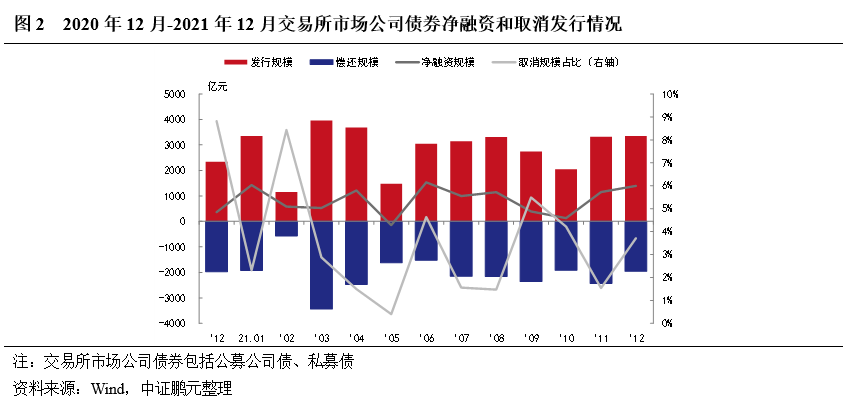 2. 12月份交易所公司債券凈融資1,393.12億元,共取消發行債券20只