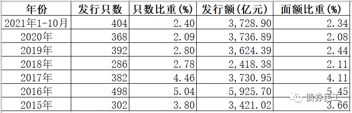 企業債券的歷年發行數據也能說明這個問題:2017年和2018年金額和只數下降很大,但是從2019年開始,企業債券的發行只數和數量開始提高。目前2021年1-10月的發行金額已經基本和2020年全年的持平,發行只數已經超過2020年全年。