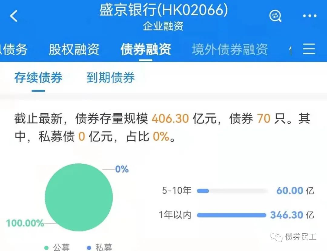 根據企業預警通的信息,盛京銀行國內存量債券金額為406.30億元,其中1年以內到期的債券金額為346.30億元;存續債券共有70只,主要為金融債券、二級資本債券和同業存單等。盛京銀行最新一期的債券為2021年7月30日起息的21盛京銀行CD161,發行規模1.60億元,票面利率3.22%。