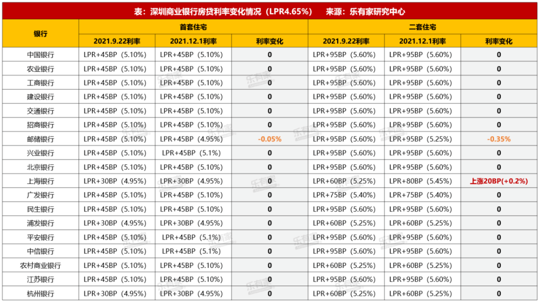 深圳房貸利率確實在回調(diào),據(jù)樂有家12月1日的統(tǒng)計數(shù)據(jù)顯示,深圳郵政銀行下調(diào)一二手房利率。首套利率4.95%,二套利率5.25%。