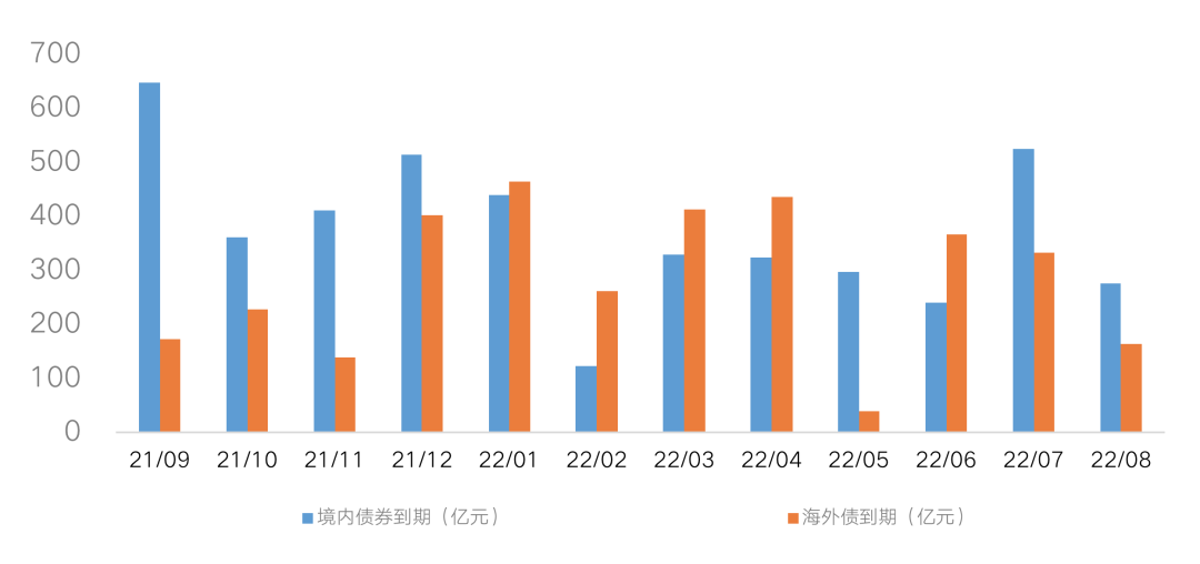 圖:一年內(nèi)核心房企到期境內(nèi)債券VS海外債
