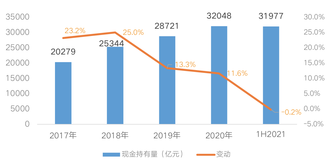 圖:80家重點上市房企歷年現(xiàn)金持有量及同比變化情況