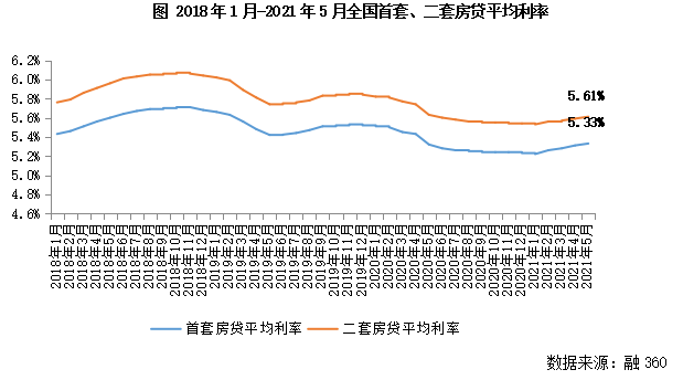 其二,以調升房貸利率為輔助手段,2月以來全國房貸利率趨勢性上升。融360數據顯示,2021年2月,全國房貸利率率先止跌回升,隨后數月呈趨勢性上移。截至5月,全國首套房平均房貸利率5.33%,較年內低點上漲11BP,二套房貸款平均利率5.61%,較年內低點上漲8BP。