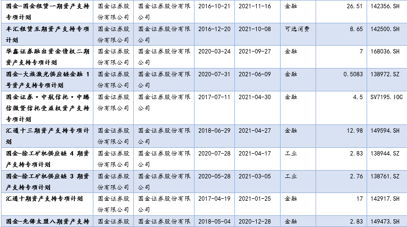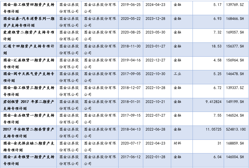 由國(guó)金證券作為管理人發(fā)行的企業(yè)ABS現(xiàn)存續(xù)的共有33單