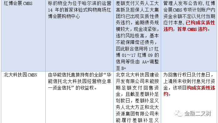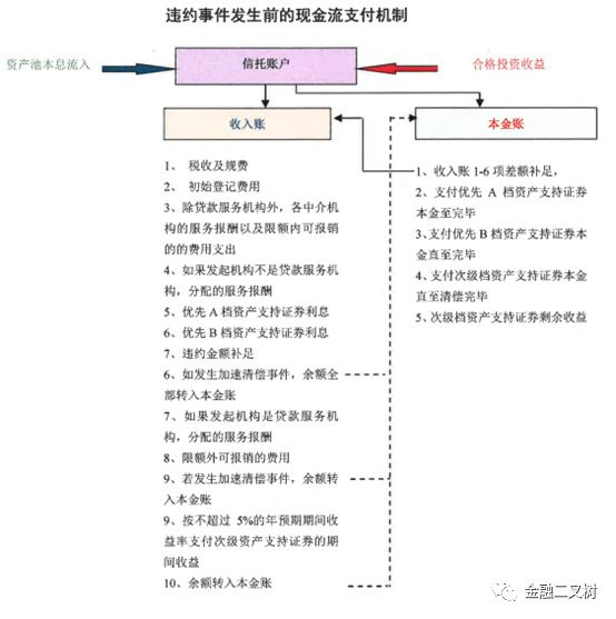 上圖所示產品有A、B檔兩個層級及次級,當出現違約事件后,償付順序是優先A檔本金、利息 優先B檔本金、利息 次級本金及超額收益。當優先A檔本息正常兌付時,而B檔本息無法正常兌付時,優先B檔發生實質違約,而當次級本金損失,而優先A、B檔正常兌付本息時,小編認為沒有發生實質違約,風險事件會影響現金流分配但不一定導致違約。