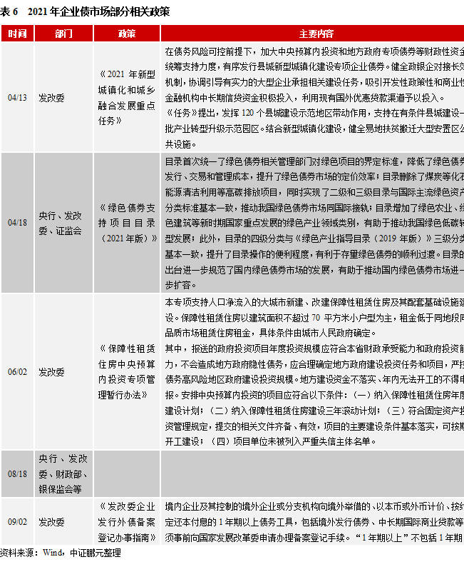 市場(chǎng)展望:第一,為實(shí)現(xiàn)“共同富裕”,城鎮(zhèn)化和農(nóng)村產(chǎn)業(yè)融合依然是政策重點(diǎn);綠色債、城鎮(zhèn)化債券將出現(xiàn)增長(zhǎng),但示范地區(qū)融資分化加劇。第二,企業(yè)債待償還規(guī)模或增加,隱性債務(wù)化解或繼續(xù)推動(dòng)提前兌付。第三,資金跟著項(xiàng)目走,信用風(fēng)險(xiǎn)管理加強(qiáng),低級(jí)別高負(fù)債企業(yè)債發(fā)行或出現(xiàn)收縮。