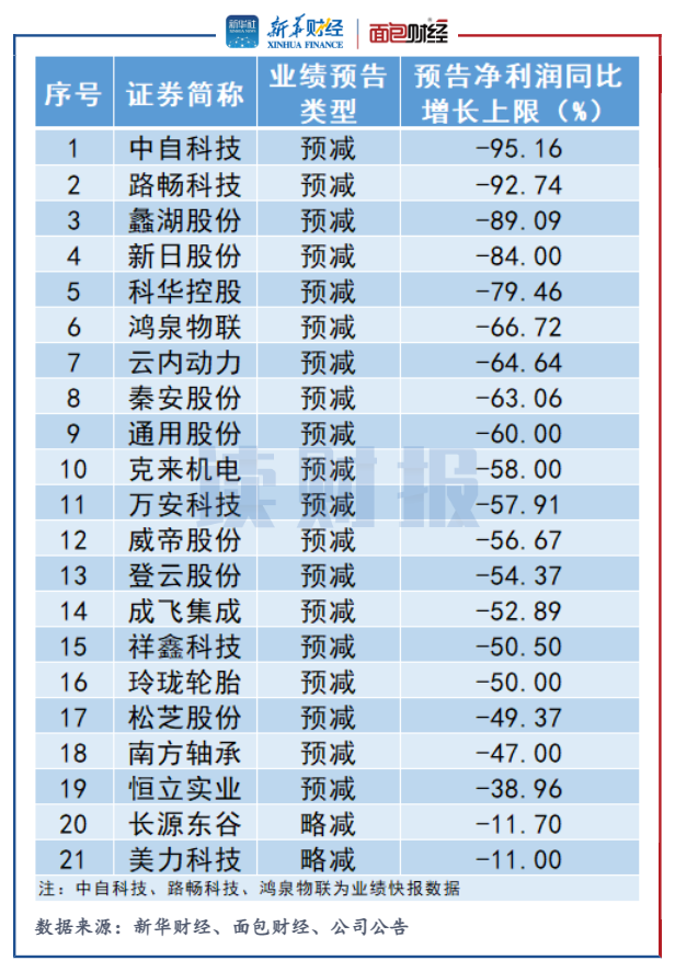 此外,萬里揚、*ST索菱虧損上限在4億元以上,精進電動、興民智通、青島雙星虧損上限均達3億元以上。