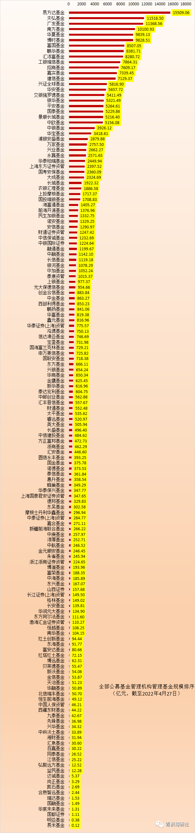 3、截至2022年4月27日,15家銀行系基金公司合計管理的基金規模達到5.19萬億(占整個公募基金行業規模的20%左右),其中非貨幣型與貨幣型分別達到3.15萬億和2.04萬億。