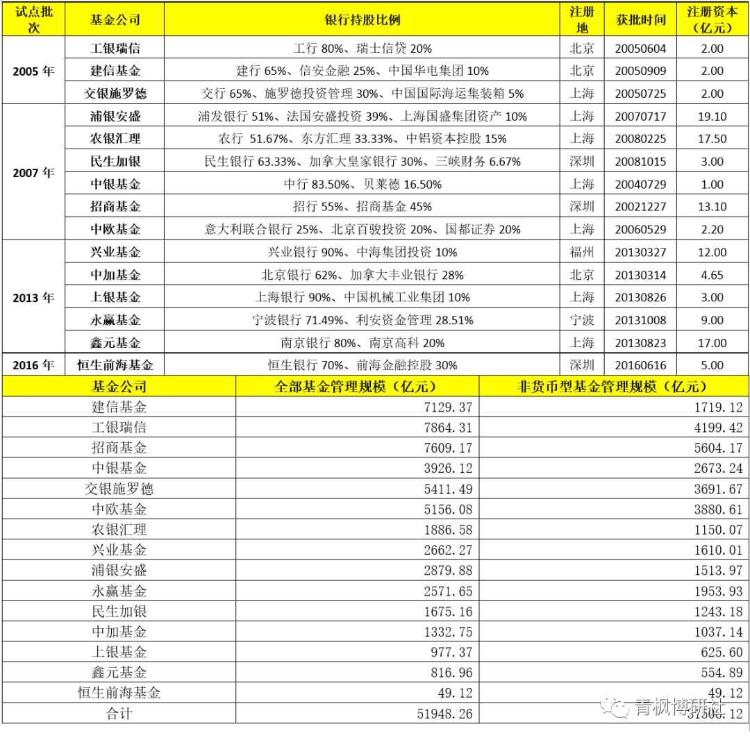 (三)目前15家銀行系基金公司基本情況