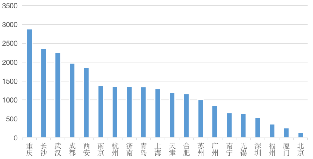 從數據看,重慶、長沙、武漢、成都等中西部城市表現依然強勁,重慶成交規模2877萬平方米居首位。隨著項目的建設交付,這些項目將在未來一年轉化為該城市企業拓展的對象,重慶新項目規模將進一步與其他城市拉開差距。