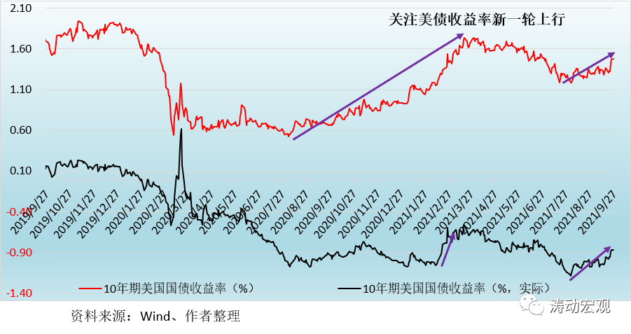 1、2021年8月4日以來(lái),10年期美債名義收益率由1.20%附近升至目前的1.48%附近,在將近兩個(gè)月的時(shí)間里累計(jì)上升了28BP。