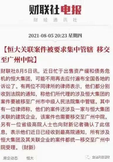 債務(wù)人的還款方式主要分三種:第一種是掙錢還款,第二種是借錢還債,有的人就是拆東墻補西墻,現(xiàn)在很多的人拆東墻補西墻都做不到了,借不到錢。第三種是賣資產(chǎn),通過賣掉自己的股份,房子,車子等等,通過賣資產(chǎn)去還這個錢。比如說大家都知道的今年蘇寧開始暴發(fā)債務(wù)危機,首先就是它主業(yè)賺不到錢,財報上顯示2012年到現(xiàn)在9年時間,蘇寧易購包括線上店都在虧本,主業(yè)賺不到錢,其次它也借不到錢,去年問阿里巴巴借了十個億,上千億的盤子借十個億有什么用,付利息都不夠。前兩步都不行以后,最后就是賣資產(chǎn)。首先賣足球隊,蘇寧足球隊還欠員工的工資,去年還拿了一個中超的冠軍,拿了冠軍以后馬上就搞不下去了,就賣掉成了一個笑話,足球隊也沒有人要不得不解散,最后還是深圳國資委接盤買了點股份?,F(xiàn)在恒大也出現(xiàn)債務(wù)危機,房地產(chǎn)這幾年特別是在四五線城市的收益都是比較差的,賺不到什么錢,它已經(jīng)是上萬億的負債,現(xiàn)在要降負債,把負債降到五千億之內(nèi),現(xiàn)在到期的債權(quán)要還,只有打折賣資產(chǎn)還。所以恒大就急于賣房子,我一個新疆客戶6月底買了恒大的房子,買了兩層,打折的力度都到五折了。原來一萬塊一個平方,現(xiàn)在五千就賣,通過這樣快速回款,不然到期債務(wù)還不出的話,人家就要起訴它了?,F(xiàn)在恒大官司已經(jīng)陸陸續(xù)續(xù)的爆發(fā)了,前一段時間是宜興一個銀行和他們打官司,現(xiàn)在又是廣告費打官司,前陣子最高院還出了一個文件,就是恒大所有的官司必須移交到廣州中院統(tǒng)一裁定,現(xiàn)在全國債主都要起訴他了,都來不及處置和分財產(chǎn),所以發(fā)了一個文要移送到廣州中院。