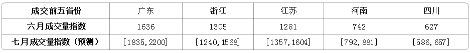 七月預測:成交量在302至357筆左右,成交率指數區間[21.46%,22.57%],起拍折扣指數區間[77.51%,78.76%],變現折扣指數區間[99.41%,106.55%]。