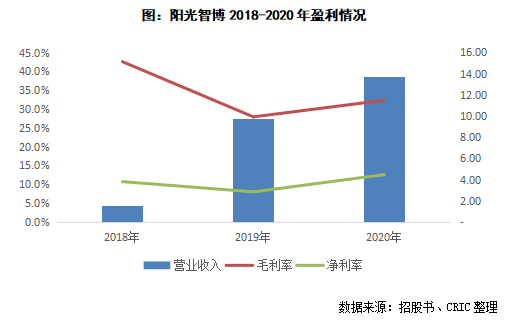 2021年6月11日陽光智博向港交所提交了招股書,截至2020年末陽光智博擁有183個在管項目,合計在管建筑面積約3160萬平方米,其中19個是商管項目;合約項目達326個,合計建筑面積達到6920萬平方米,合約在管面積比為2.19,未來面積轉(zhuǎn)化具有較大的潛力。而從收入情況來看,截止2020年末,陽光智博實現(xiàn)營業(yè)收入13.72億元,同比增長40%,凈利潤1.73億元,其毛利率和凈利率分別為32.3%和12.6%。