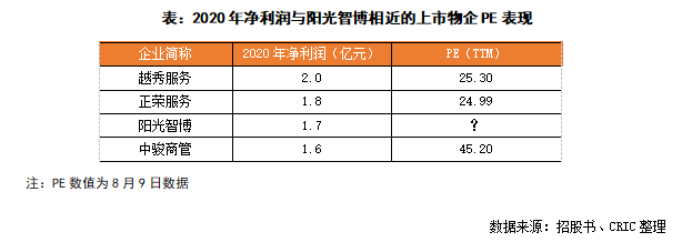 而2020年末陽光智博的凈利潤1.73億元,略高于目前港股上市物企中的中駿商管,低于越秀服務。綜合考慮其業(yè)態(tài)特性及凈利潤表現(xiàn),假使陽光智博獨立上市,按照25倍PE,預計市值不超過45億元。綜合來看,換股萬物云5%股權(quán)的市值潛力較陽光智博單獨上市提升約233%。
