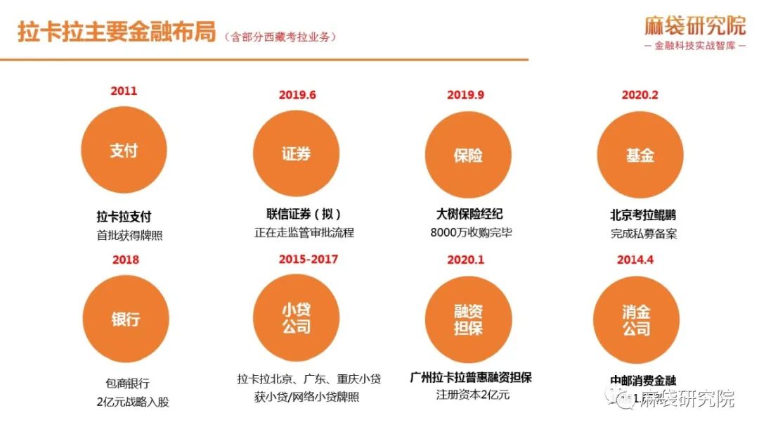 截至目前,拉卡拉連同其剝離前主體,在銀行、保險、證券等多個金融細分領域均有涉足: