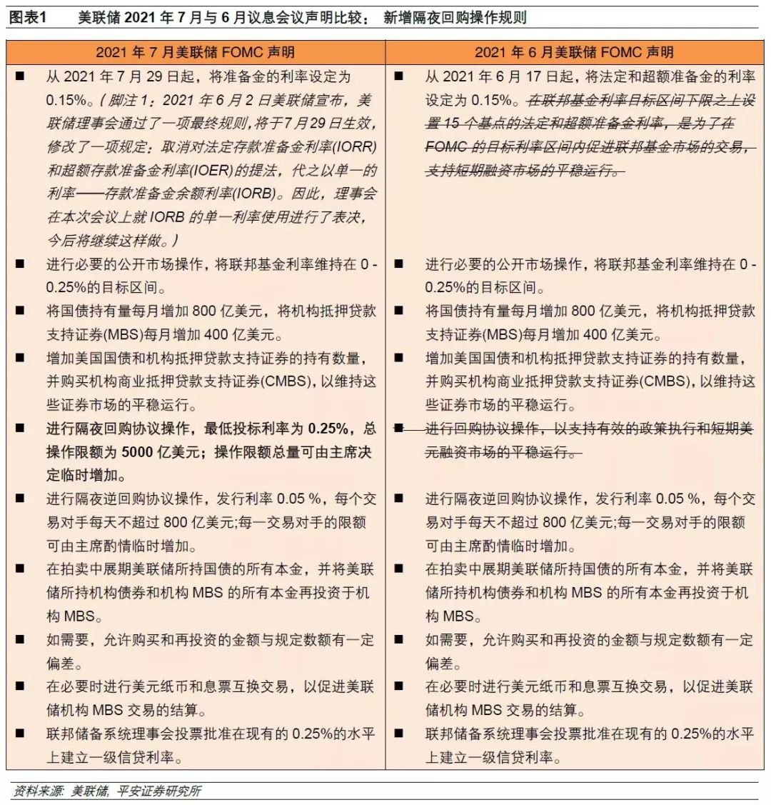 聯邦基金利率維持在0%-0.25%的目標區間不變,超額準備金利率(IOER)維持在0.15%不變,隔夜逆回購協議利率(ONRRP)維持在0.05%不變。