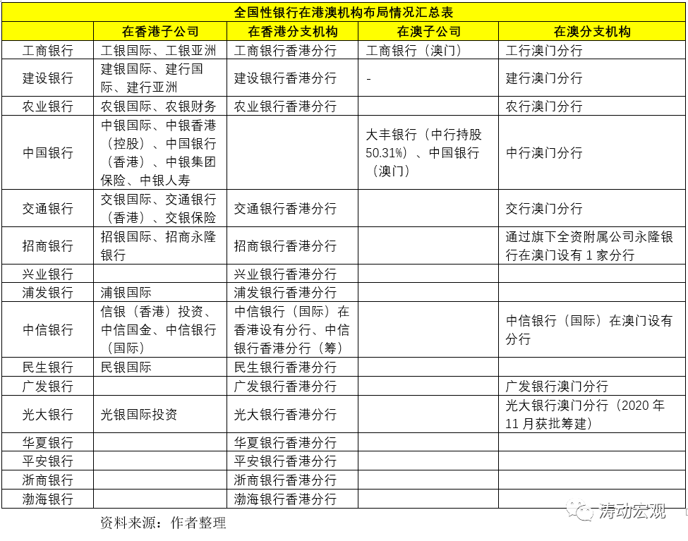 一、全國性銀行在港澳地區(qū)的機(jī)構(gòu)布局情況