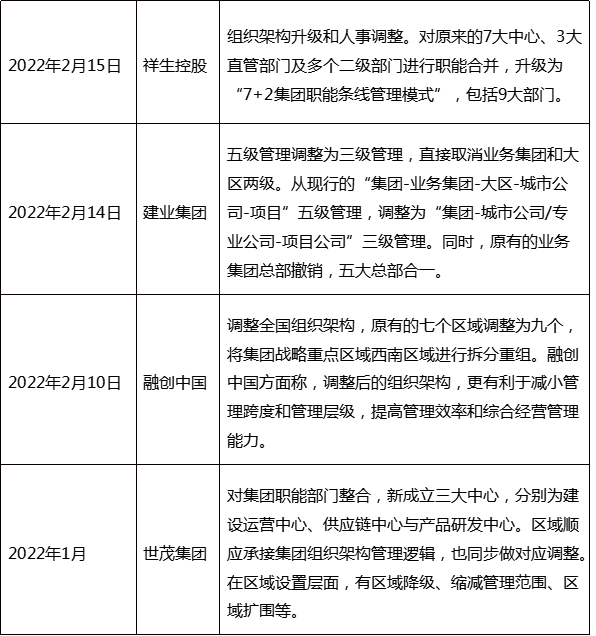 精總部:總部向平臺化靠攏,站位從原有的房開業務向集團性總部轉化,站位更高。如華潤置地在2021年的組織架構調整中首先重新進行了總部的定位:將“總部做專”變為“總部做精”,打造“專業+專家型”的總部。
