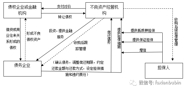 正因如此,債務(wù)重組是針對出現(xiàn)流動性困難的企業(yè),不良資產(chǎn)經(jīng)營機(jī)構(gòu)分別與債權(quán)人、債務(wù)人就還款金額、還款方式、還款時間等債權(quán)債務(wù)問題達(dá)成協(xié)議,通過更改債務(wù)條款,實行債務(wù)合并的方式,優(yōu)化該類企業(yè)的資產(chǎn)負(fù)債結(jié)構(gòu)、盤活企業(yè)不良資產(chǎn),幫助企業(yè)渡過財務(wù)危機(jī)的一種不良資產(chǎn)經(jīng)營模式,其基本業(yè)務(wù)流程如下圖: