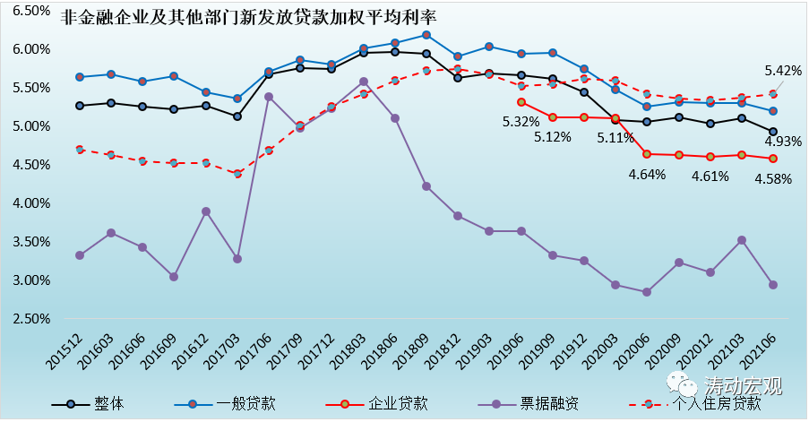 (二)今年二季度,新發放貸款加權平均利率降至我們之前預期的5%以下,即4.93%,較一季度大幅下行17BP。其中,新發放一般貸款、新發放企業貸款以及票據融資利率分別下行10BP、5BP和58BP。可以看出,除一般貸款和企業貸款確有明顯下行外,新發放貸款利率下行與票據融資利率大幅下行有較大關系。