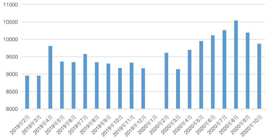根據全國商品房銷售面積、銷售金額測算,10月商品房銷售均價為9875元/平方米,同比上升5.8%,環比下降約2%。這是繼6月以來全國商品住宅單月成交均價首次跌破萬元以下。
