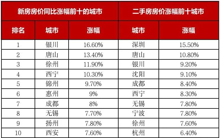從二手房來看,深圳以0.9%的環比漲幅領跑二手房價,但這一數字也創下了今年3月以來的新低。此外,銀川、揚州、沈陽分別以0.8%的漲幅緊隨其后。
