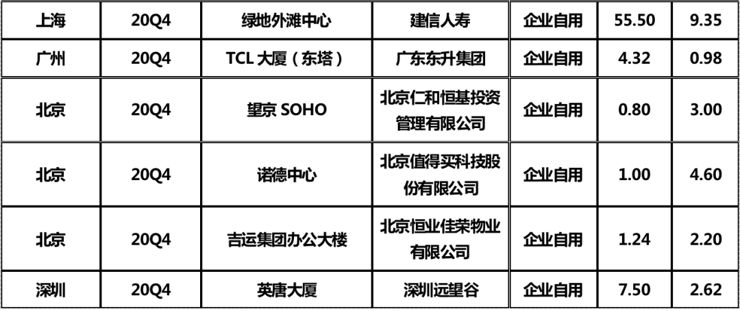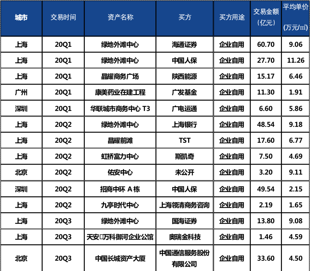 因企業(yè)自用需求產(chǎn)生的交易較往年成倍增長,迎來高峰: 一方面現(xiàn)金流充足的企業(yè)看準市場的窗口期以較合理的價格購入優(yōu)質資產(chǎn),可以實現(xiàn)投資長期的保值增值;另一方面在總部經(jīng)濟的熱點效應下,企業(yè)應對新形勢調整發(fā)展戰(zhàn)略,重塑企業(yè)架構,整合性遷址或擴租。