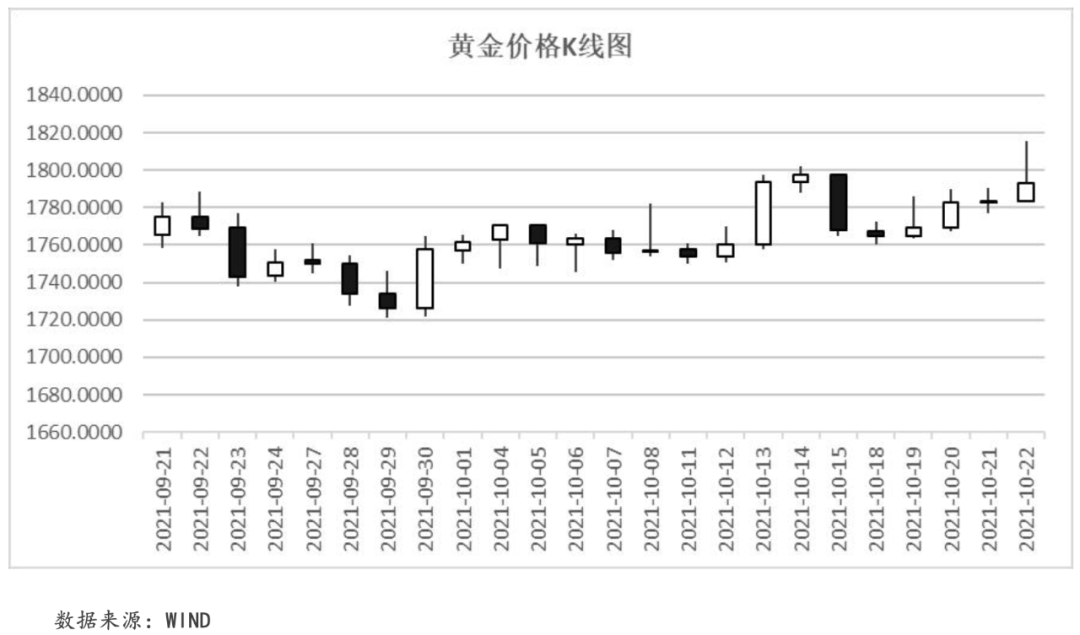 本周,美國“褐皮書”的公布顯示出,美國經濟增速有所放緩的同時,通脹問題日益嚴峻。供應鏈的中斷、原材料價格上漲、能源價格上漲和勞動力的恢復緩慢都讓人們意識到這些共同助推高通脹的因素在短期內并不能有所改善。高通脹的持續拉升了市場避險情緒,黃金作為抗通脹的主要避險工具,因此金價走高。截至本周五,COMEX黃金價格收于1,793.10美元/盎司,周內累計收漲1.45%,連續第二周上漲。