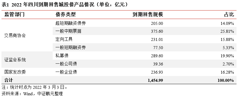 一、2022年四川省城投債到期回售規模全國排名靠前,可能發生回售的債券規模較大,3月為償債高峰期,AAA和AA級別規模占比較高,償債主體主要為地市級及區縣平臺,中期票據規模最大