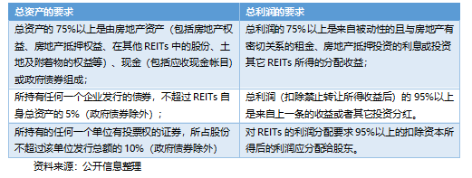 2)至少70%的總資產(chǎn)必須投資于房地產(chǎn)、房地產(chǎn)租賃等房地產(chǎn)直接相關(guān)資產(chǎn);95%的總資產(chǎn)必須投資于房地產(chǎn)直接相關(guān)資產(chǎn)、超過50%資產(chǎn)投資于房地產(chǎn)的投資公司股票、現(xiàn)金以及現(xiàn)金等價物;