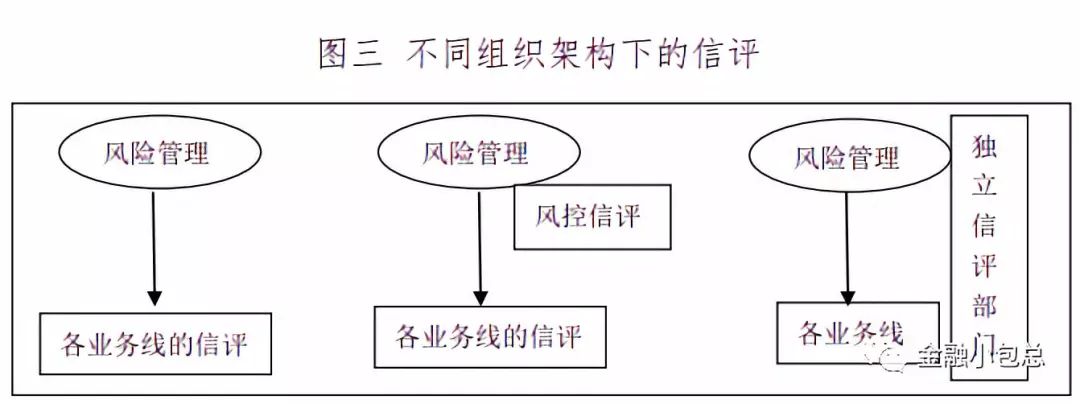 組織架構(gòu)獨(dú)立信審模式之下,可以在全公司層面的信用風(fēng)險管理委員會或者投資決策委員會下面下設(shè)獨(dú)立的信評部門,負(fù)責(zé)所有信用風(fēng)險敞口業(yè)務(wù)的審核和信用研究工作,并向風(fēng)控部報備。