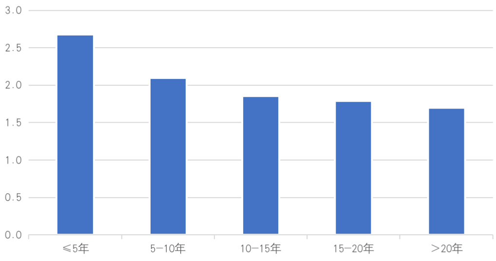 不同樓齡段項目平均物業費(元/㎡/月)