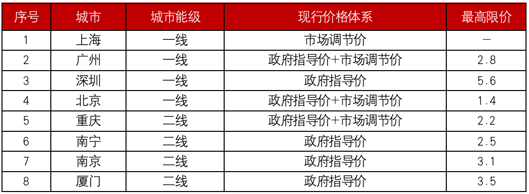 一方面,上海實行市場調價在全國具有良好示范作用,廣州、重慶等城市在政府指導價基礎上實行市場調節價,市場化價格體系正逐步推行。