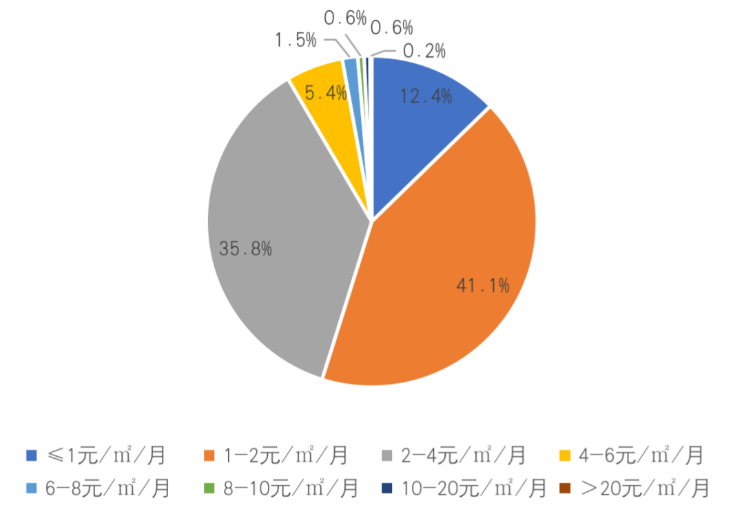 其中10-20元/㎡/月價格段中北京、上海兩市合計占比近60%,一線城市高物業費壟斷明顯。