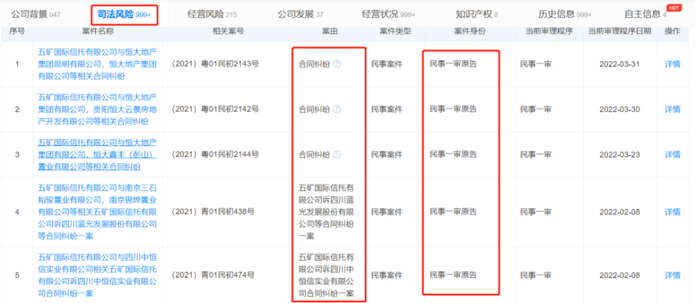 據天眼查數據顯示,五礦信托相關司法風險有999+條,自身的麻煩可以說剪不斷理還亂。