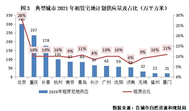 2020年末,“蛋殼”等長(zhǎng)租公寓相繼暴雷,中央經(jīng)濟(jì)會(huì)議把“解決好大城市住房突出問題”列為2021年要抓住的八大重點(diǎn)任務(wù)之一。2021年2月,自然資源部下發(fā)重點(diǎn)城市供地“兩集中”文件中也提到重點(diǎn)城市在2021年在年度計(jì)劃中單列租賃住房用地,占比一般不低于10%,并且常住人口增長(zhǎng)快、租賃住房用地缺口大的城市要進(jìn)一步提高比例。