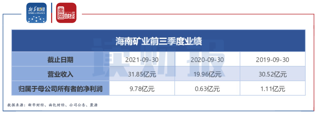 業(yè)績的大幅增長是海南礦業(yè)股價上漲的有力支撐。2021年前三季度,公司實(shí)現(xiàn)營業(yè)收入31.85億元,同比增長59.6%;實(shí)現(xiàn)歸母凈利潤9.78億元,大幅增長逾14倍;扣除非經(jīng)常損益的歸母凈利潤為6.75億元,同比增長逾5倍,非經(jīng)常損益主要系公司所持交易性金融資產(chǎn)市值上升導(dǎo)致的公允價值變動收益及處置股票產(chǎn)生投資收益。