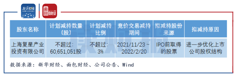 截至11月1日,復(fù)星產(chǎn)投持有公司無限售條件流通股6.72億股,占公司總股本比例33.24%,是公司第一大股東,與公司控股股東上海復(fù)星高科技(集團(tuán))為一致行動人。若此次減持計劃順利實(shí)施,將是復(fù)星產(chǎn)投自公司2014年上市以來的第一次減持,按照11月1日公司收盤價14.61元/股來估算,此次減持復(fù)星產(chǎn)投或套現(xiàn)近8.9億元。