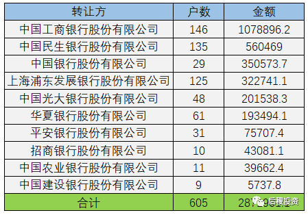 經(jīng)過數(shù)據(jù)整理我們發(fā)現(xiàn),工商銀行連續(xù)兩年出讓金額保持第一,建設(shè)銀行、招商銀行等的出讓規(guī)模大幅下降,民生銀行出讓規(guī)模上升較多,華夏銀行也略有上升,交通銀行、興業(yè)銀行則跌出了前十。