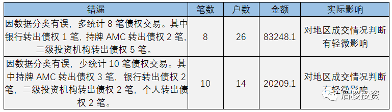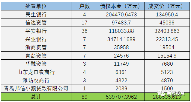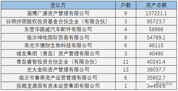 另外需要補(bǔ)充說明的是:本次統(tǒng)計(jì)山東省2019年度成交公告共計(jì)2394戶,其中債權(quán)金額未披露的有418戶。未披露金額的債權(quán)成交記錄戶數(shù)明細(xì)如下: