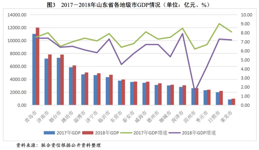 總體看,山東省經(jīng)濟規(guī)模處于全國上游水平,一般公共預(yù)算收入排名全國前列,整體債務(wù)負擔(dān)輕。山東省各地級市經(jīng)濟發(fā)展分化程度較高,其中青島市等沿海城市及省會濟南市的經(jīng)濟和財政實力明顯高于其他地級市,發(fā)債城投企業(yè)主要集中在上述區(qū)域。山東省東部沿海城市和省會濟南市的經(jīng)濟和財政實力明顯高于其他地級市。近年來,山東省城投企業(yè)債務(wù)負擔(dān)持續(xù)增長,其中青島市、濟南市、菏澤市和泰安市的城投企業(yè)債務(wù)負擔(dān)較重。山東省大部分地級市城投企業(yè)的償債能力及籌資力度有所下降,部分地級市城投企業(yè)融資壓力明顯加大,未來兩年山東省存續(xù)城投債券將面臨集中兌付高峰期。從外部支持看,山東省城投企業(yè)全部債務(wù)高于地方政府債務(wù)余額,考慮政府支持后山東省城投企業(yè)整體的償債能力一般。