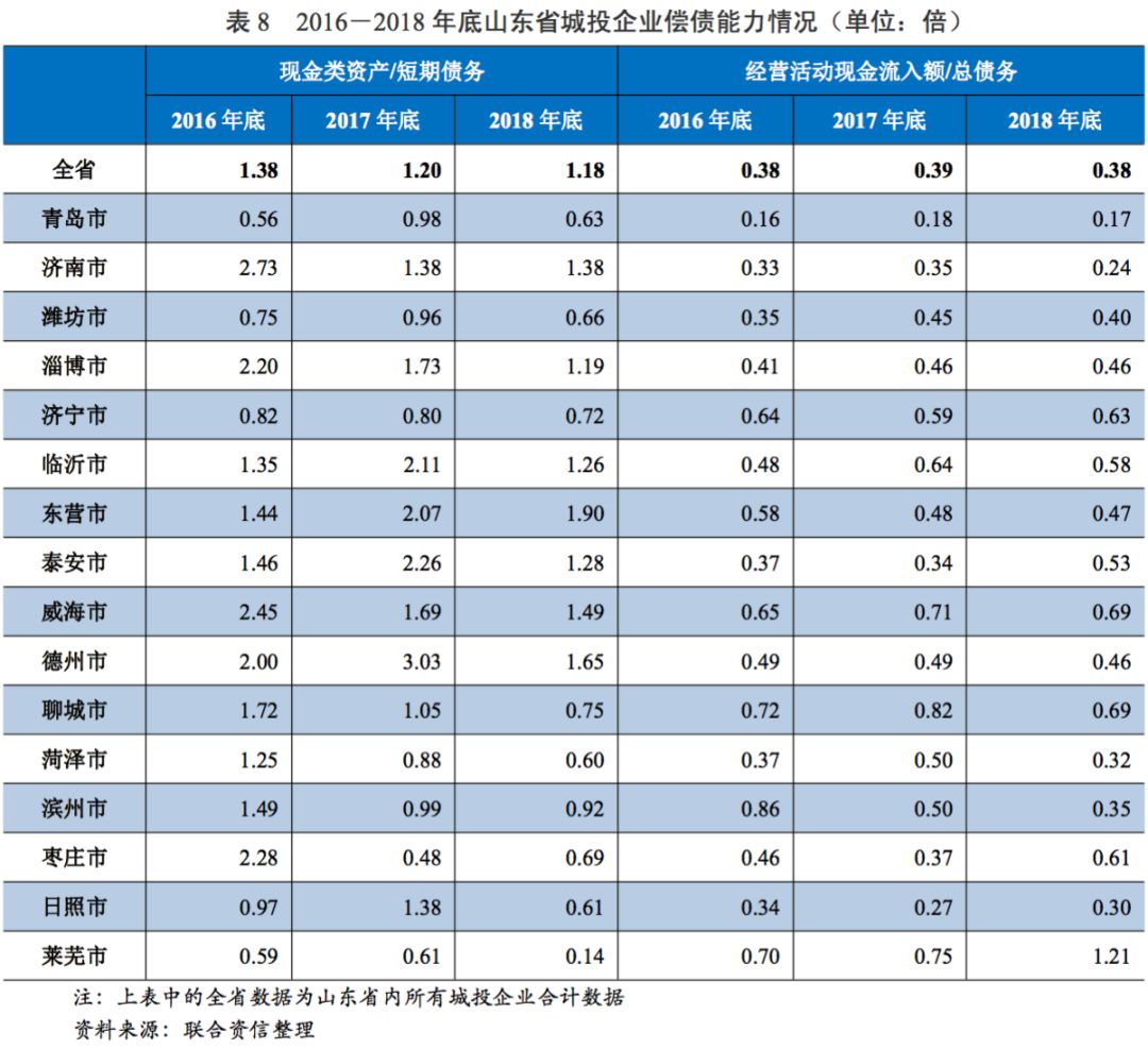 山東省城投企業(yè)全部債務(wù)高于地方政府債務(wù)余額,考慮政府支持后山東省城投企業(yè)整體的償債能力一般。
