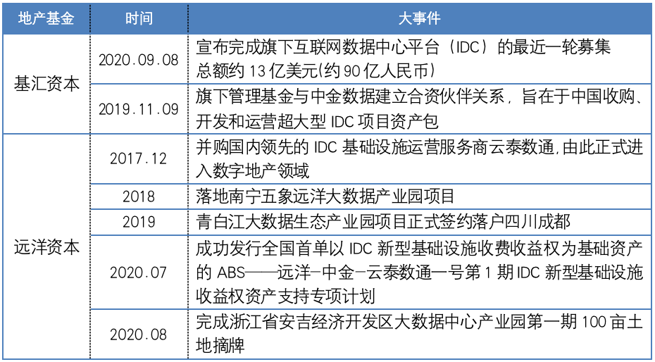 基匯資本&遠(yuǎn)洋資本數(shù)據(jù)中心大事件一覽
