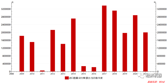 圖10:我國從蒙古進口動力煤