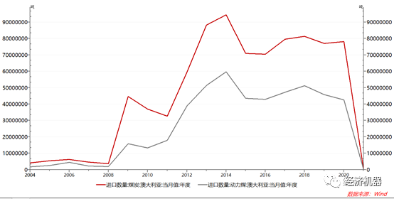 其他因素。比如中澳關系惡化下,中國自澳大利亞進口的煤炭和動力煤從每年的8000萬噸和4000萬噸,下降至0(圖11)。這個數雖然只占全年消費量的1%-2%,但在供需格局接近平衡的情況下,確實放大了供給彈性。國內方面,很多煤炭大省加大反腐力度,倒查好多年,而能源行業歷來是腐敗重災區,確實也對煤炭行業的的風險偏好有一定抑制。