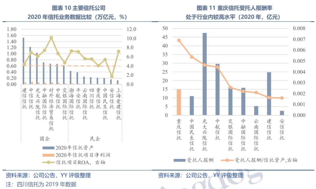 就子公司經營而言,旗下的重慶信托2020年信托管理規模超2000億元,受托報酬/信托資產之比0.007,均處國內民營信托行業前列,歷史風控能力優異,但受2021年房企風險釋放等因素影響,2020年自營業務關注率迅速上升(5.72%,但仍低于同業平均),信托資產踩雷廈門萬廈天成、寶能。三峽銀行近幾年也有上市動作。三峽銀行除IPO補血存較大不確定性外,目前來看貸款板塊風險控制較好。不過需關注其作為信托子公司,投資板塊信托產品、資管計劃等中高風險品種配置比例達28%,也潛藏一定風險。基礎設施板塊表現較弱,但體量不大(路橋、高速兩家子公司2020年營收合計僅3.3億元),對同方國信的影響較小。同方國信子公司業務經營存在一定風險,但整體較穩健。