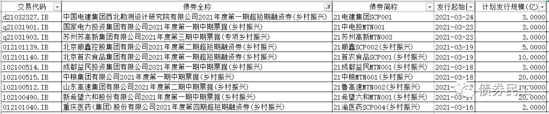 1、從發(fā)行的債券產(chǎn)品類型來看,鄉(xiāng)村振興票據(jù)包括中期票據(jù)和超短期融資券。目前已經(jīng)公告發(fā)行的鄉(xiāng)村振興票據(jù)包括6只中期票據(jù)產(chǎn)品和4只超短期融資券產(chǎn)品。《問答》中沒有明確具體的產(chǎn)品類型,但是從命名規(guī)則可以看出,SCP、CP、MTN, 、PPN和ABN均可以作為鄉(xiāng)村振興票據(jù)的載體。