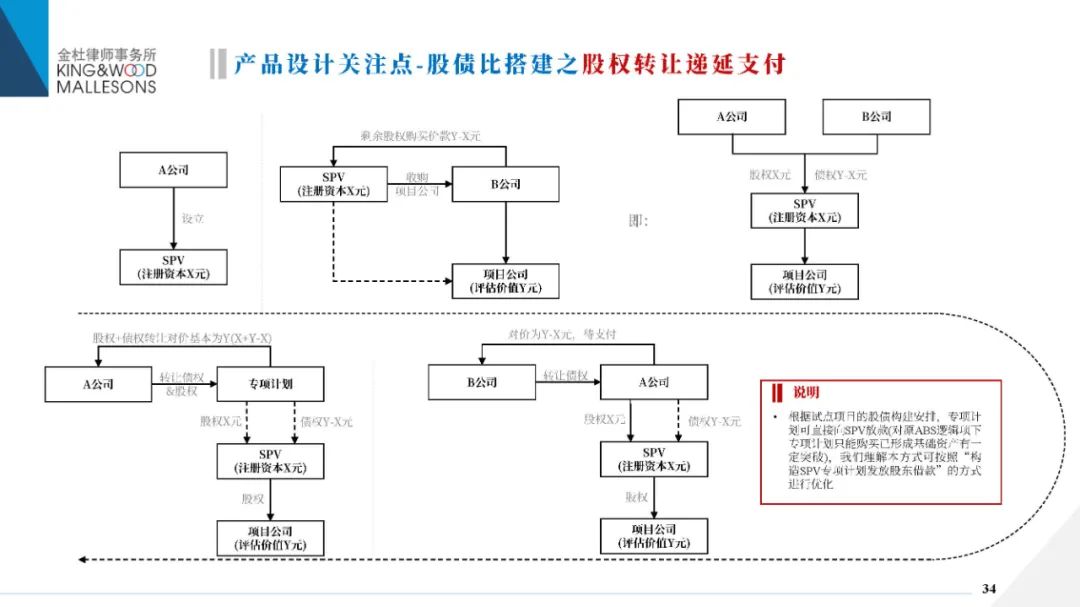 該模式無需單獨構(gòu)造借款并進行放款,但假設(shè)設(shè)立SPV時,僅投入33.3%的實收資本/資本公積,將SPV的權(quán)益投資部分預(yù)先做小,然后通過遞延支付67.7%部分股權(quán)轉(zhuǎn)讓對價的方式確認債權(quán),似乎也能達到構(gòu)建股債比的效果,但在此情況下,仍需要通過新債的投入償還/購買這筆舊債,似乎并不達到簡便的效果;